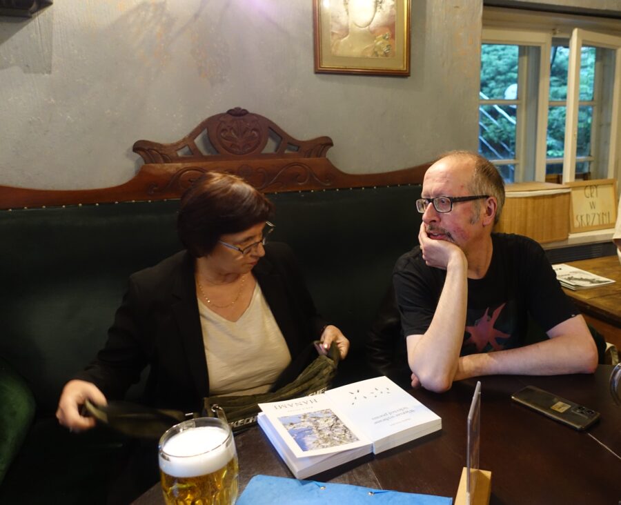 Poetka przyjaźni się także z poetami i pisarzami z Niemiec i Austrii. Spotykają się na wielu międzynarodowych festiwalach i rozmowy zawsze dotyczą poezji. W bibliotece opowiadała o tym, jak przeczytała w Szlezwiku wiersz poświęcony dziadkowi zamordowanemu podczas wojny w obozie Gross-Rosen. Było to akurat pierwszego września. Niemieccy poeci byli poruszeni, ale doskonale rozumieli emocje polskiej koleżanki i przepraszali, choć przecież sami nie ponoszą za to odpowiedzialności.