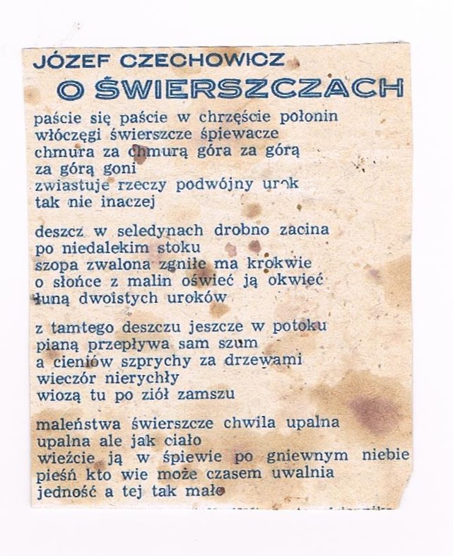Prawie 50 lat temu znalazłam na strychu naszego domu stary „Przekrój”, a w nim wiersz Józefa Czechowicza „O świerszczach”. Wycięłam go i przechowuję do tej pory. Tak zaczęła się moja fascynacja twórczością lubelskiego poety. Długo o tym marzyłam, aby zaprezentować swoje wiersze w jego mieście.
