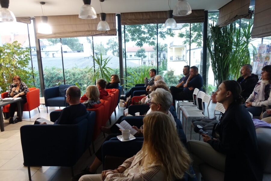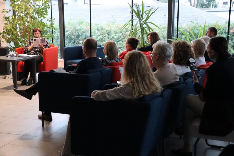 „Jesteśmy po spotkaniu autorskim bardzo skromnej, a za razem bardzo empatycznej Pani Marii Duszki. Mieliśmy okazję przenieść się w świat widziany jej poetyckimi oczami.