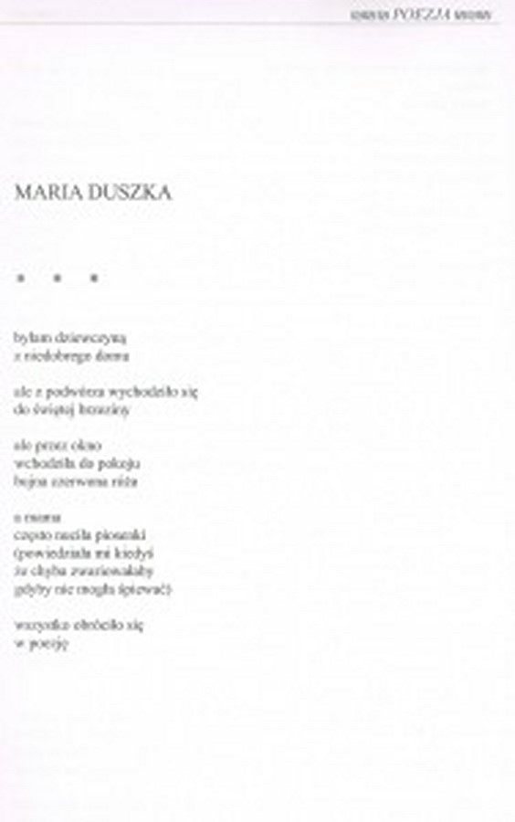 Utwory Marii Duszki zostały przełożone na język angielski, niemiecki, francuski, rosyjski i serbski. Przekłady były publikowane w czasopismach i antologiach w Niemczech, Stanach Zjednoczonych i Serbii.